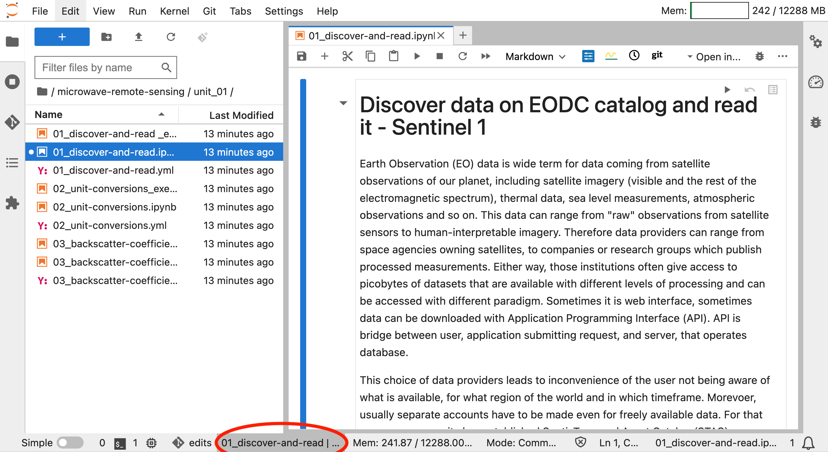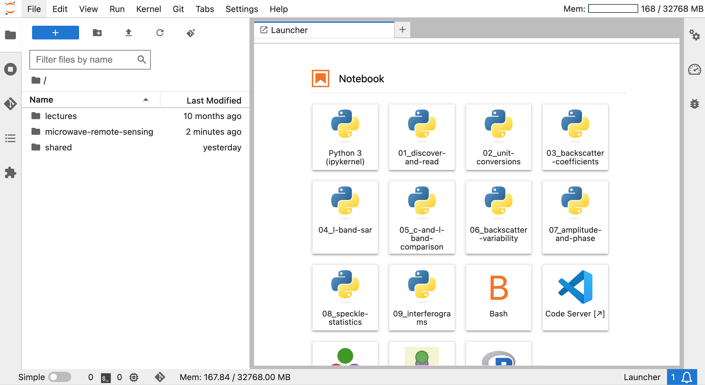 This is a short guide to create and run the notbooks and environments in the JupiterHub for the Master course Microwave Remote Sensing (120.030) at the TU Wien.